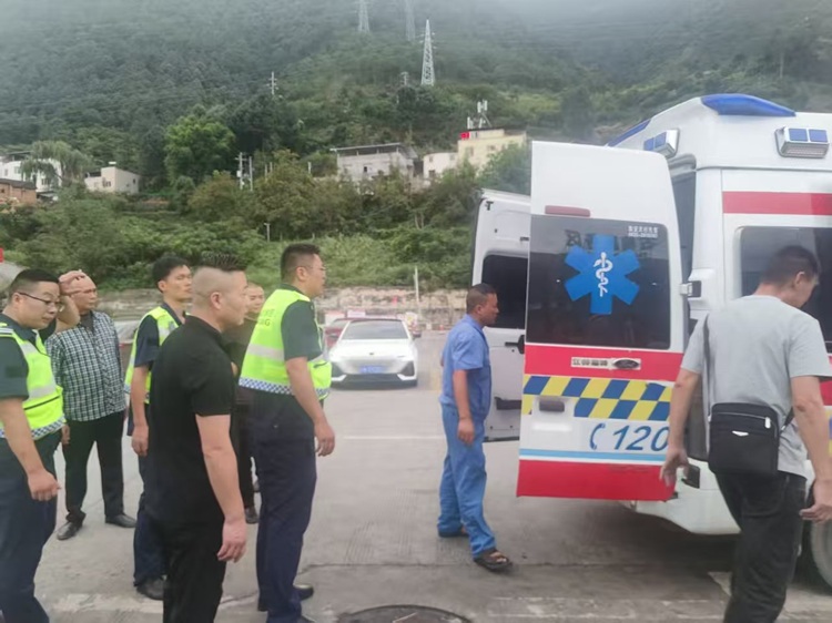 在等待救援期间,因发现老人在晕厥过程中有咬舌迹象,为避免其受伤,管理人员果断用手抵住病人牙齿,并迅速将毛巾垫入口中。由于国庆车流量大,服务区休息的旅客较多,为防范潜在风险,对相关区域进行了临时管控并做好解释工作。16时55分,120急救人员到达现场。现场管理人员协助将病人抬上救护车。由于病人儿子(即驾车人)需随车前往汉源县医院,而其私人车辆停放在A区,经其本人委托,现场管理人员同意协助将该车辆驶至汉源县医院交付,以解决家属后顾之忧。